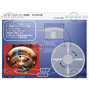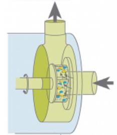 | 強力に剪断された溶液はステーターの開口部より吐出します。 この時強い流体剪断が発生します。 溶液は吐出口に押し出され、同時に吸入口より新たな材料が吸引されることで連続的に攪拌とポンプ作用が継続されます。 被强力分散、剪切和溶解后的物料由于转子产生的超高的离心力,从定子的间隙中被喷射出。 同时由于强烈的撞击和定转子间的精密间隙,物料被剪切。 剪切后的物料在被喷射出的同时,新的物料被连续吸入工作腔。 |