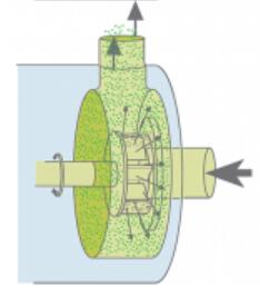 | ローターがワークヘッド内で高速回転することで強力な吸引力が発生し、液体がワークヘッドの吸入口より吸い込まれます。 工作腔内高速旋转的转子在正常工作时,产生强烈的吸力,把液体吸入工作腔内。 |